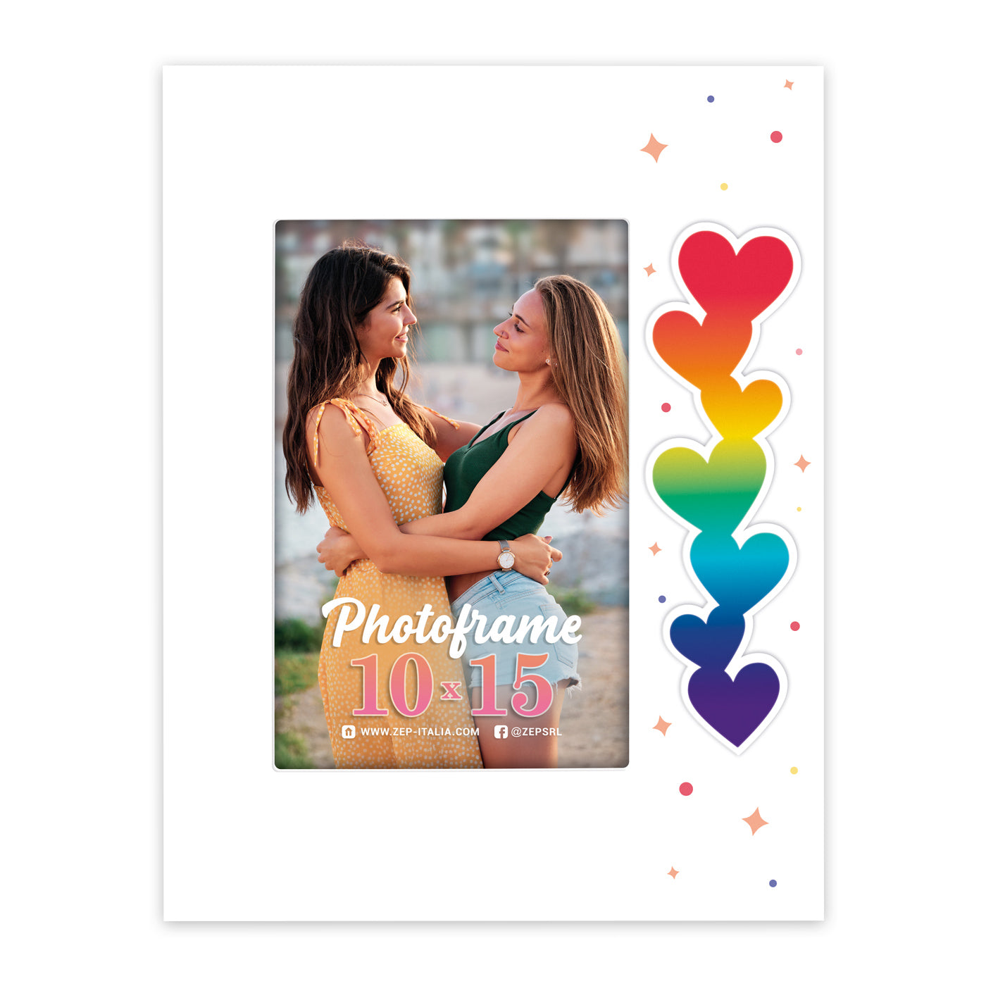 Cornice Alexia in legno, colore bianco, stampa con cuori colorati, da tavolo, adatta al tema dell'amore, idea regalo originale, adatta per casa e ufficio.